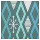 A retro 1950s art pattern with geometric hollow diamonds and atomic era style stars. Multicolored colours include teal, turquoise, aquamarine, and ocean green.