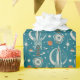 My original vector illustration of a stylised space scene, inspired by the atomic fifties and sixties, in teal, dark orange, antique white, and minty aqua, with a variety of textures. ©Christine Duffield 2022