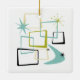 Add that splash of fun and color to your Christmas tree with this fabulous atomic era mid century modern holiday ornament! This design features abstract squares, starbursts, and a boomerang in the colors of yellow, aqua blue, avocado green, and black...so funky!