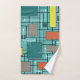 Atomic Era Abstract Lines Boxes Turquoise Hand Towel