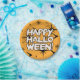 A spooky mid century modern Halloween pattern with 1950s boomerangs and sputnik starbursts, in orange and black.