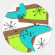 Atomic Era Inspired Boomerang Design in teal, lime and chocolate brown.  Colours relevant to the time period.  Unique products for the home, office and t-shirts.
