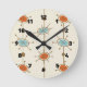 A vintage styled mid century modern abstract art pattern with retro sputnik starbursts in orange and blue.