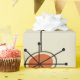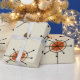 A vintage styled mid century modern abstract art pattern with retro sputnik starbursts in burnt orange and sky blue.