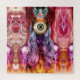 Beautiful, whimsical, surreal and trippy collage of a strange, otherworldly female entity in rainbow colours.