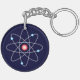 Dark blue keychain with an atom symbol.