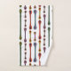 This towel set has a mid-century modern design of atomic lines with "feathers" on either end and an outline around each one.