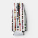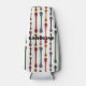 This bottle cooler has a mid-century modern design of atomic lines with "feathers" on either end and an outline around each one.