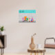 You are invited to the social event of the year with this Atomic Palm Springs Stewardess Party poster design. Join these three vintage flight attendants from rivaling airlines as they check into their kitschy 1960s breezy block hotel. One of the fabulously hunky bellhops in a retro hot pink uniform holds the orange door while the other struggles with the women's luggage. Teal palm trees sway in the background of the impossibly turquoise sky as a jetliner flies overhead. This design will have you saying, “On your mark, jet set, go!”
