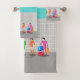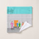 You are invited to the social event of the year with this Atomic Palm Springs Stewardess Party towel set design. Join these three vintage flight attendants from rivaling airlines as they check into their kitschy 1960s breezy block hotel. One of the fabulously hunky bellhops in a retro hot pink uniform holds the orange door while the other struggles with the women's luggage. Teal palm trees sway in the background of the impossibly turquoise sky as a jetliner flies overhead. This design will have you saying, “On your mark, jet set, go!”