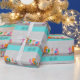 You are invited to the social event of the year with this Atomic Palm Springs Stewardess Party wrapping paper design. Join these three vintage flight attendants from rivaling airlines as they check into their kitschy 1960s breezy block hotel. One of the fabulously hunky bellhops in a retro hot pink uniform holds the orange door while the other struggles with the women's luggage. Teal palm trees sway in the background of the impossibly turquoise sky as a jetliner flies overhead. This design will have you saying, “On your mark, jet set, go!”