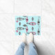 This retro Atomic Pink and Grey Pattern Door Mat is so awesome it will have you saying, “I can’t believe it’s not barkcloth!” The vintage inspired design is a new take on mid century modern styles. It offers all of the fun of finding a vintage product without having to schlep through antique stores and flea markets. Just when you think it can’t get more perfect, you learn that this whimsical design with its kitschy off kilter shapes in colours of pink, charcoal grey, black, and light grey even offers the option of customising the background colour. We’ve put it on a lovely shade of aqua, but a quick change of the background colour, and… Presto! Change-o! The product has gone from subdued to daring! There are dots, starbursts, and diamonds in this piece of modern art. This homage to the 1950s will thrill your retro loving soul.