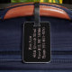 This was purchased as part of a 40th Birthday present for my nephew who is going to Vegas. It is made of high quality, very study and we decided only to put his name on the back of the tag, but you can add a full address if you so wish.