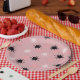 This Atomic Pink Starbursts Paper Plate has all of the mid century modern fun of your grandma’s kitchen, minus the sticky linoleum. The kitschy design features a pink background with gold speckles and randomly placed starbursts in black and two shades of pink. This vintage inspired pattern is mod enough to be stylish and retro enough to be classic. Serve up some love with this minimalist design.