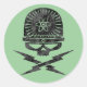 Skull and crossbolts, with atom symbol and crossed lightning bolts. Heavily distressed graphic, on t-shirts and gifts.