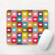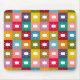 This mouse pad has a mid-century modern design of squares with rounded rectangles with antenna in mid-century modern colours. Want the same design in different colours? Message me.