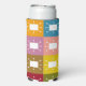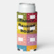 This seltzer can cooler has a mid-century modern design of squares with rounded rectangles with antenna in mid-century modern colours. Keep the text, change it, or delete it completely. Want the same design in different colours? Message me.