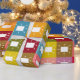 This wrapping paper has a mid-century modern design of squares with rounded rectangles with antenna in mid-century modern colours. Want the same design in different colours? Message me.