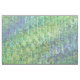 A modern take on mid-century modern : overlapping atomic shapes overlaying a digital crosshatch in bright greens and fresh blues.