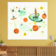My original vector illustrations of retro cats on a space adventure, in orange, aqua, gold, green and black on textured ivory and pale goldenrod.©studioxtine