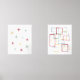 Add a burst of colour to your walls with this fabulous mid century modern art set. The first design features red, yellow, blue, and green atomic starbursts and the second design features coordinating abstract squares.