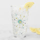This fabulous mid century modern glass tumbler features an atomic starburst in turquoise blue, avocado green, cream, and black. This will add a bit of fun to your drink!
