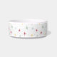 This fabulous mid century modern pet bowl features cute atomic starburst and dots in the colours of red, blue, yellow, and green starbursts, with black dots. Add your pet's name for a fun element at feeding time!