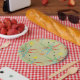 This fun pattern of abstract starbursts in a variety of vivid colours hearkens back to Mid Century Modern Atomic Age contemporary design. Remember the retro Science Fiction or SF vision of what our future would be like?