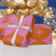 This is elegant mid century modern atomic starbursts on pink and orange scallop Capsule shapes. It's great gift wrap for anyone who love retro designs