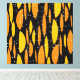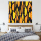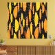 Atomic-style geometric pattern resonates with retro elegance in black and orange.
