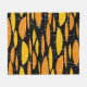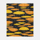 Atomic-style geometric pattern resonates with retro elegance in black and orange.