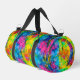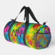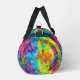 With a blaze of vibrant colour in a unique pattern that melds tie-dye and fractal art, this duffel bag with an optional monogram and optional secret message on the bottom will be a stand-out wherever you take it. Click "Personalise" to edit the optional text. Click the big blue "Edit using Design Tool" button from bottom of that panel if you'd like to customise other aspects of the design. Try any of the 13 image filters for markedly different colour effects. You may re-size or re-position the peace signs or even remove them altogether if you wish. You can add your own images and text, and/or edit what's already there. The sky's the limit with personalising this groovy bag to be uniquely yours.