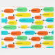 This large fleece blanket has a mid-century modern design of long ovals in yellow, orange, green, and turquoise with black lines with circles on the ends.