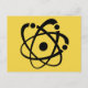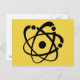 Asymmetrical atom symbol, black or yellow graphic, t-shirts, hoodies, buttons, stickers, cards, gifts.