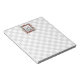 5.5” x 6” notepad with an image of a grey and white chequerboard and a vintage black and white Alice in Wonderland image of Alice under attack by the Cards in a black and white chequerboard frame on a background of playing cards on red. See the entire Wonderland Notepad collection in the PARTY FAVORS section.