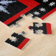 Was a complicated and challenging puzzle to put together. As you might guess, just looking at it. Something to work on concentration of the mind. It looked great. The print was bright and colorful. The colors of this image are black and red trim and background. But the red was actually printed as a dark pink. Even though, it still looked good.