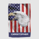 Attacking head of a bald eagle over the American flag. A patriotic golf towel for anyone. Customisable template name at the bottom. You can change or delete the name. You can transfer this design to a number of other towels. If you need to change the font, font colour, the colour of the background; if you need to adjust the image to the printable area, please, use the "Edit Design" button or "Click to customise further" under the "Details" link. This beautiful towel can be found in the "Sports" collection or in the "Sports, Toys & Games"-->"Sports & Outdoor"-->"Sports Equipment"-->"Golf"-->"Golf Towels" department. A choice of 16 eagles on sixteen golf towels. Buy one, have fun, and be happy.
