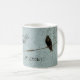 As the counting of Crows and corvids and blackbirds in based on folklore and superstition, so is the naming of a group of 3 or more Crows a "murder of crows". This beautiful, but humourous mug features two black crows at one end of a Wire and one on the other end, thus the attempted murder Viewing the mug only the 2 or the 1 crow can be seen, never the 3 at the same time. The gothic feel of the aged pale blue and brown tones adds to the mysterious and legendary appeal of the Crow. Personalise the text and Name on this beautiful mug that will appeal to any bird lover or lover of the macabre or murder mysteries or a good funny joke.