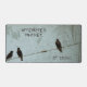 As the counting of Crows and corvids and blackbirds in based on folklore and superstition, so is the naming of a group of 3 or more Crows a "murder of crows". This macabre but humourous desk mat features two black crows at one end of a wire and one on the other end, thus the attempted murder. The gothic feel of the aged pale blue and brown tones adds to the mysterious and legendary appeal of the Crow. Personalise the text and Name on this beautiful desk matthat will appeal to any bird lover or lover of the macabre or murder mysteries or a dark, but funny joke.
