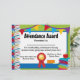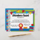 Perfect or outstanding attendance award, Customisable Kids school award certificate Letter size 8.5"x11" Use this colourful award to reward students for a job well done at any course, school or program. Custom design with stacks of books, bunting banner flags and red ribbon seal. Great to use for preschool, pre-k graduation, kindergarten, elementary primary school as an award for attendance achievement in math, science, reading, perfect outstanding attendance, great effort on the sports team for an athlete or any use! Show your pride and enthusiasm about the efforts of your students and staff with this customisable, personalised certificate. Add your own text online, and order certificates custom made for your ceremony. Leave the signature area blank to add a signature later, or type your name and title, and still add your signature above. Honoree's name can be typed in or the blank line can be left to add hand-written or printed names later.