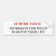 ATTENTION THIEVES!, NOTHING IN THIS TRUCK IS WO... BUMPER STICKER