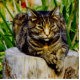 Striped tabby cat on a stump in tall grass makes for a cute photograph due to the very feline itude in every inch of its furry little body. I am cat. You must obey!