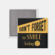 This fun motivational magnet says it all....Smile today! This cute magnet features a happy face with "Don't forget to smile today" printed in bold typed and script fonts highlighted against a yellow gold and black background,