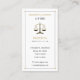 Lawyer business cards in a stylish, elegant template design with scales of justice logo symbol.
