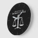 Scales of Justice design on wall clock. Great for law students or for all you types out there to celebrate law! *** Background colour can be changed.