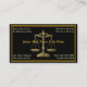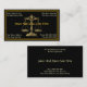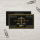 A business card design showing the legal symbol used in the practice of law. Perfect card for any law firms lawyers and attorneys. This card has a black background with thin gold border with golden scales of justice.