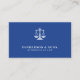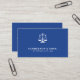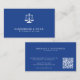 Simple minimalist lawyer attorney at law royal blue business card with scales of justice logo, QR code, and modern typography. Suitable for a law firm, professional legal practitioner, judge, solicitor, or consultant.