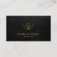 Luxury simple elegant business card for an attorney at law with a faux gold justice stylized scale on black elegant leather look background. Please note that there is not real leather, the leather look is obtained by printing.
