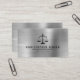 Present a professional image with this minimalist black and silver business card. The silver faux brushed metal background contrasts with the black justice scales logo and the black text to highlight your name, contact information and other details. A QR code on the back takes clients to your website.