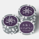 Give the guests, bridesmaids, groomsmen, or anyone else attending or helping with your geeky wedding or special event a fun treat with these customisable poker chips. One side of the poker chip features a white Planetary model of the atom on a deep plum purple background. The other side has a sample set of initials and date separated by a pattern of science related icons, including a test tube, beaker, caffeine molecule, DNA strand, and an atomic model like the one on the front. The sample text can be customised with your own details or a special message of your choice to create a unique and personal token to commemorate your big day. This design will match any product from the Attractive Forces in Purple line so that you can make your nerdy wedding or special event as coordinated as you like.